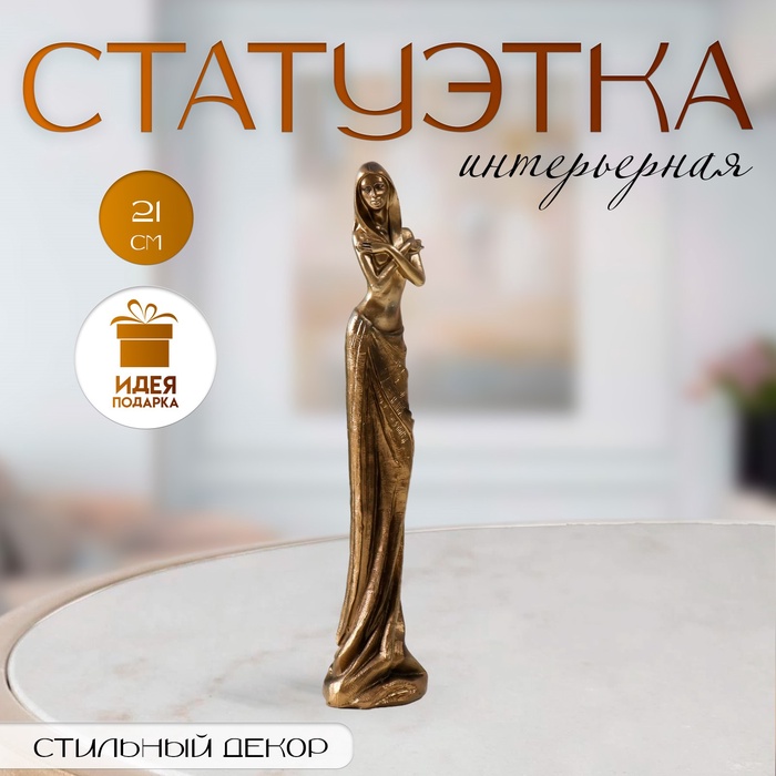 Эта статуэтка обнажённой женской фигуры — воплощение вневременной эстетики. Её лаконичная форма и тёплый металлический отблеск создают в интерьере атмосферу утончённости и спокойной гармонии. Изделие подходит для любой комнаты, становясь тихим акцентом, который притягивает взгляд и добавляет пространству художественной глубины.