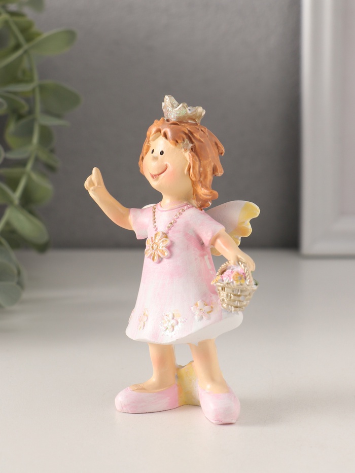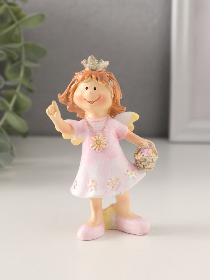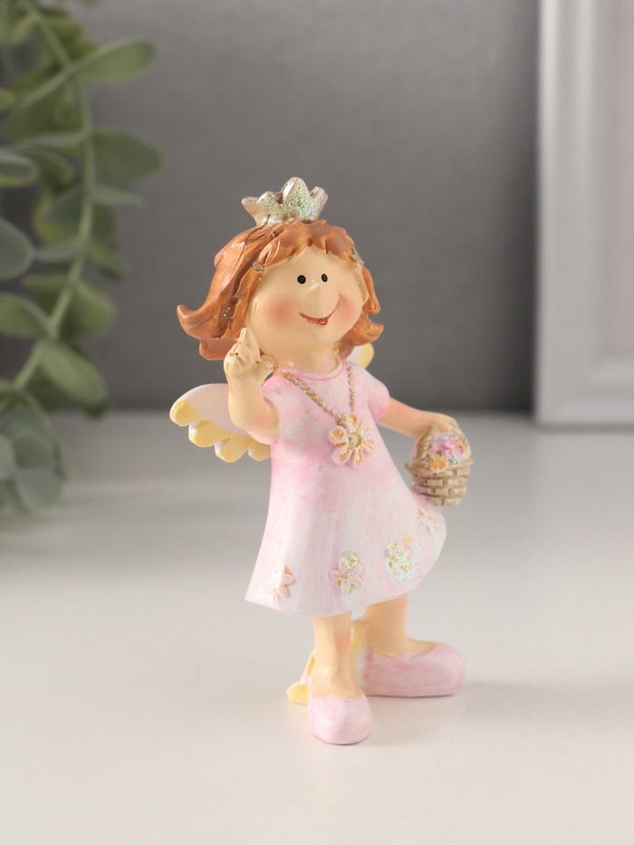 Фигурка полистоун «Принцесса-ангел в розовом платье с корзинкой цветов», 7×4×10 см