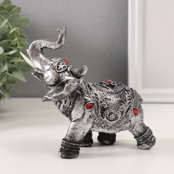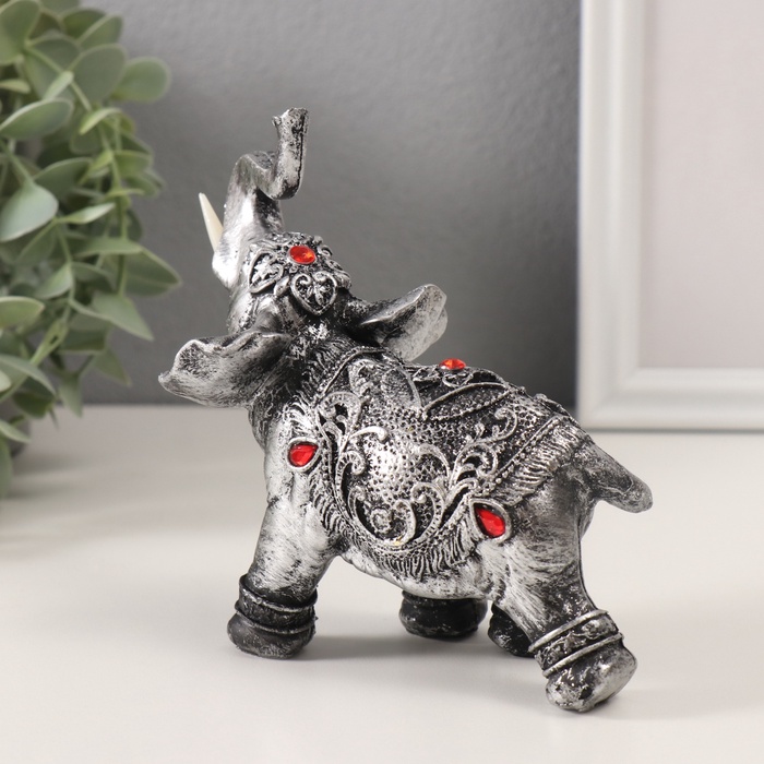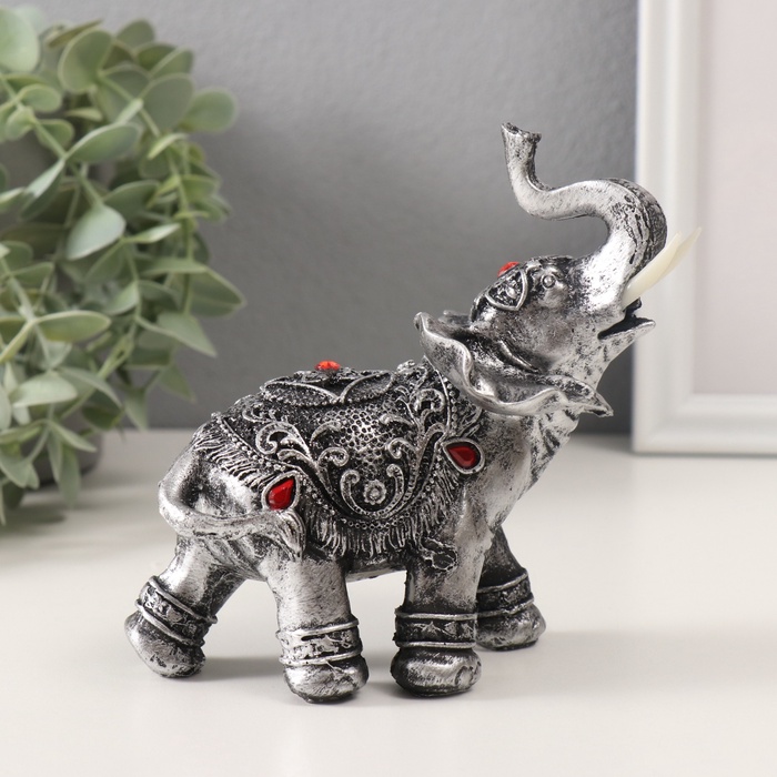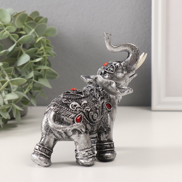 Фигурка полистоун «Серебристый слон в попоне с рубинами», 13×7.5×15.5 см