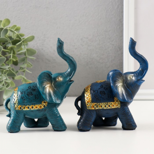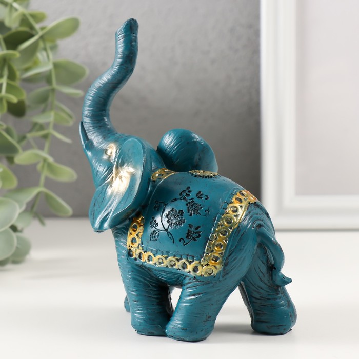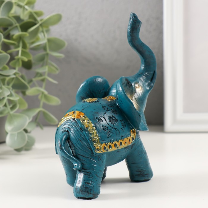 Фигурка полистоун «Синий слон с золотым узором на попоне», 13×5×11 см, МИКС