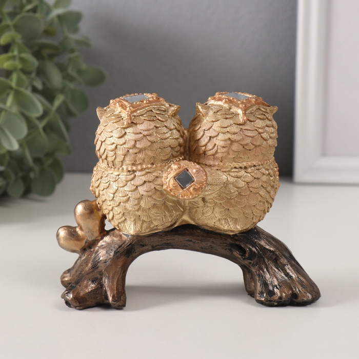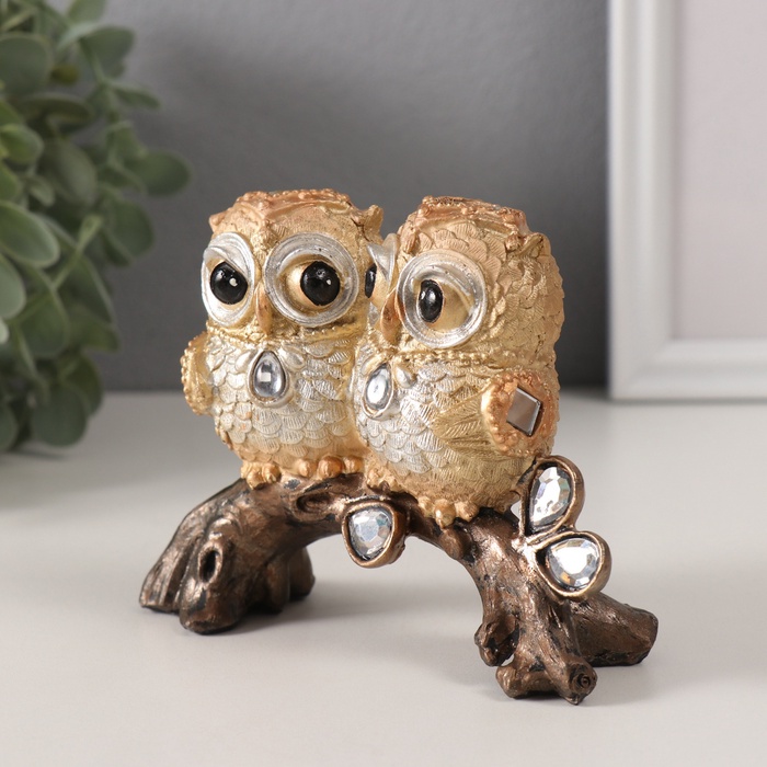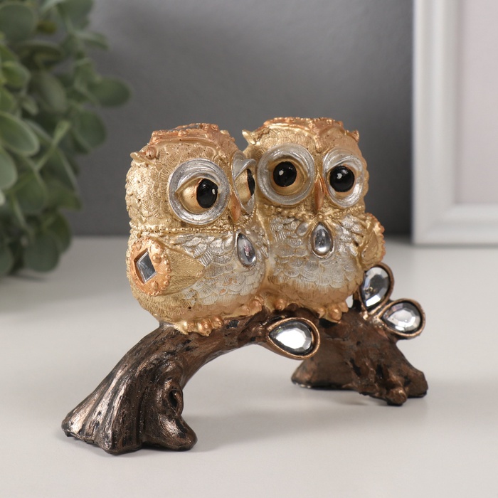 Фигурка полистоун «Совята на коряге с зеркальными листьями», 12.5×5.5×9.5 см