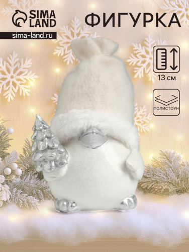 Фигурка полистоун «Воробушек в шапке с серебристой ёлкой», 10×8.5×13 см
