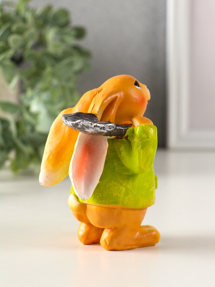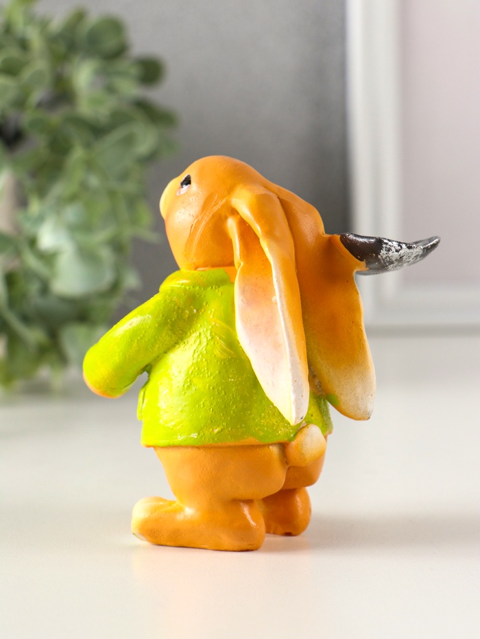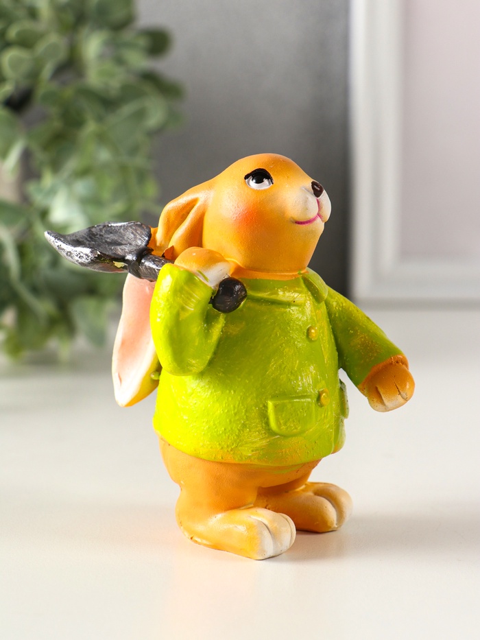 Фигурка полистоун «Зайчик с лопатой, в зелёном пальто», 6×7.5×9.5 см