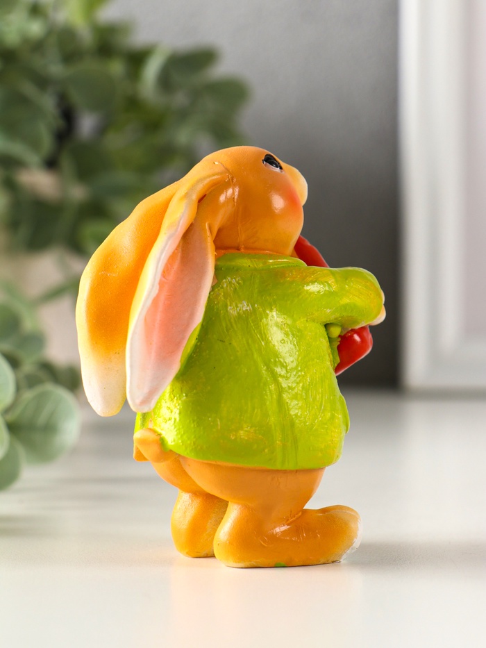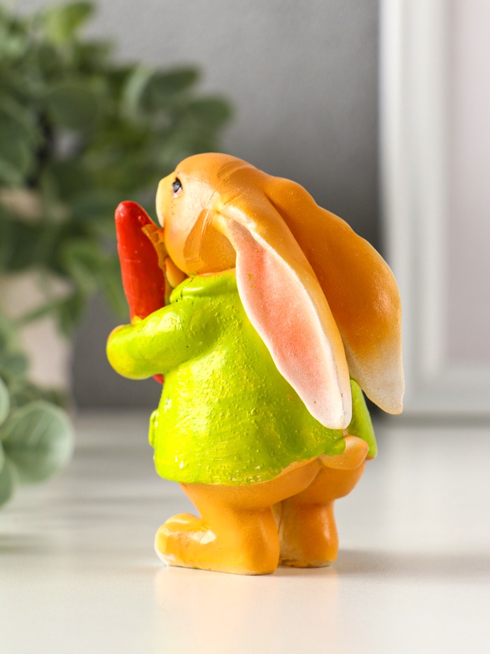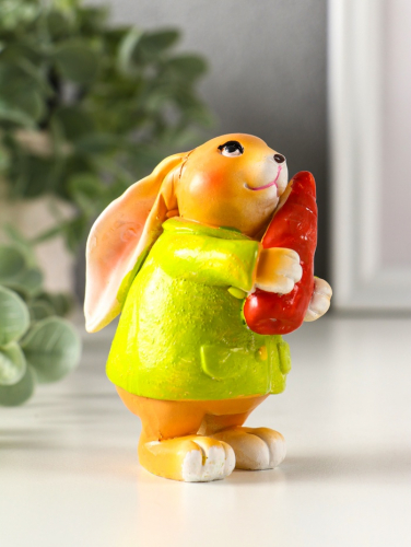 Фигурка полистоун «Зайчик с морковью, в зелёном пальто», 7×4.5×9 см