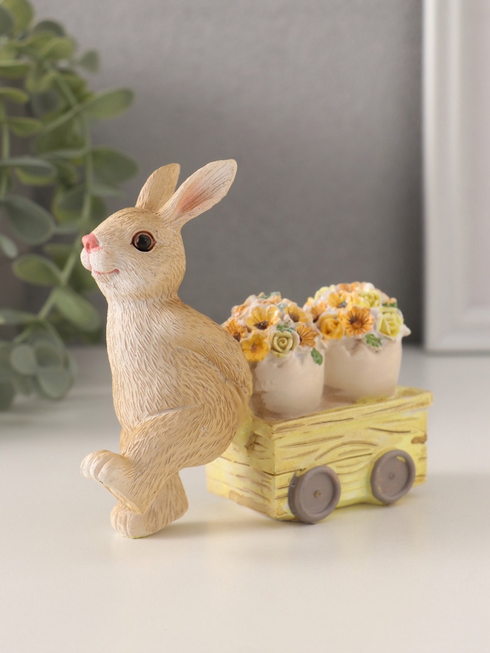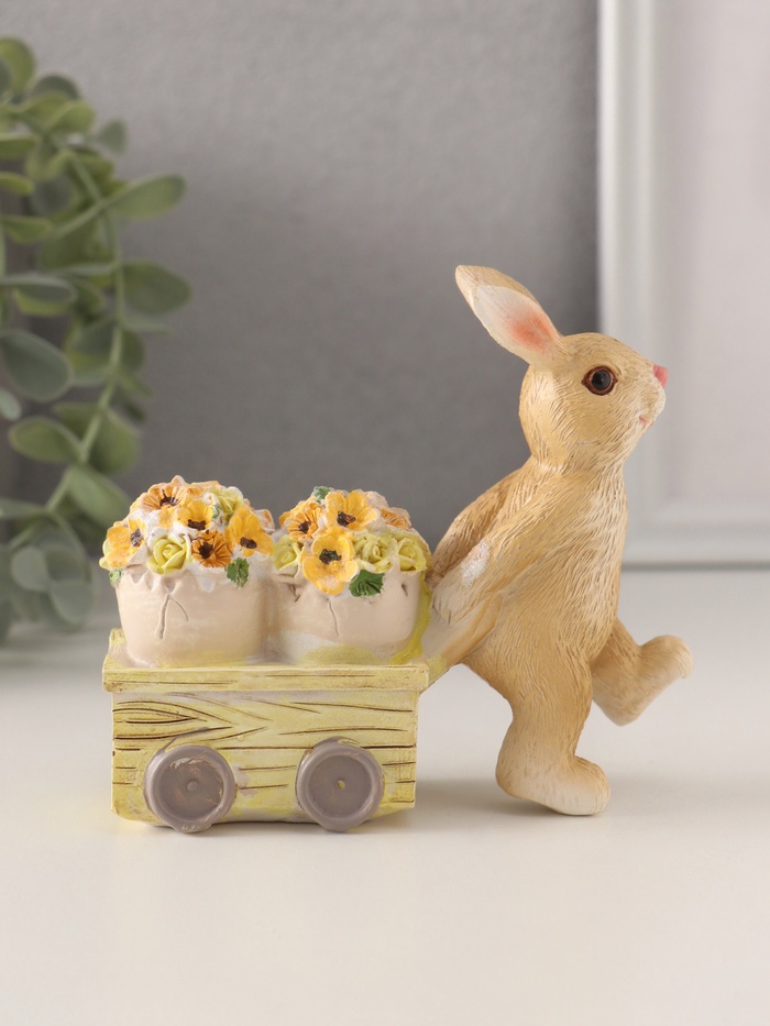 Фигурка полистоун «Зайчик везёт цветочные горшки на тележке», 11×4×10 см