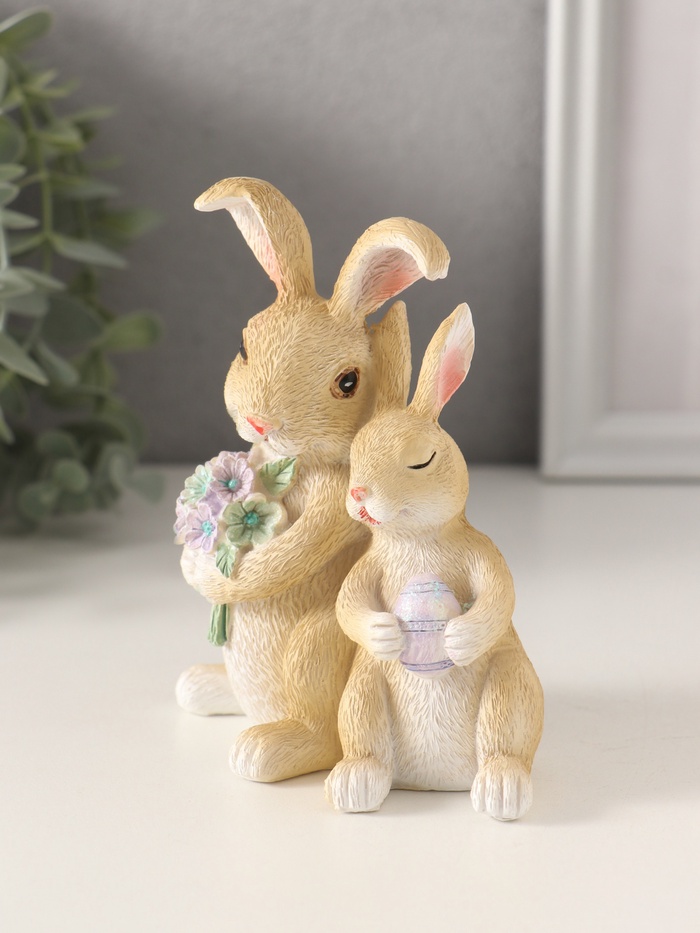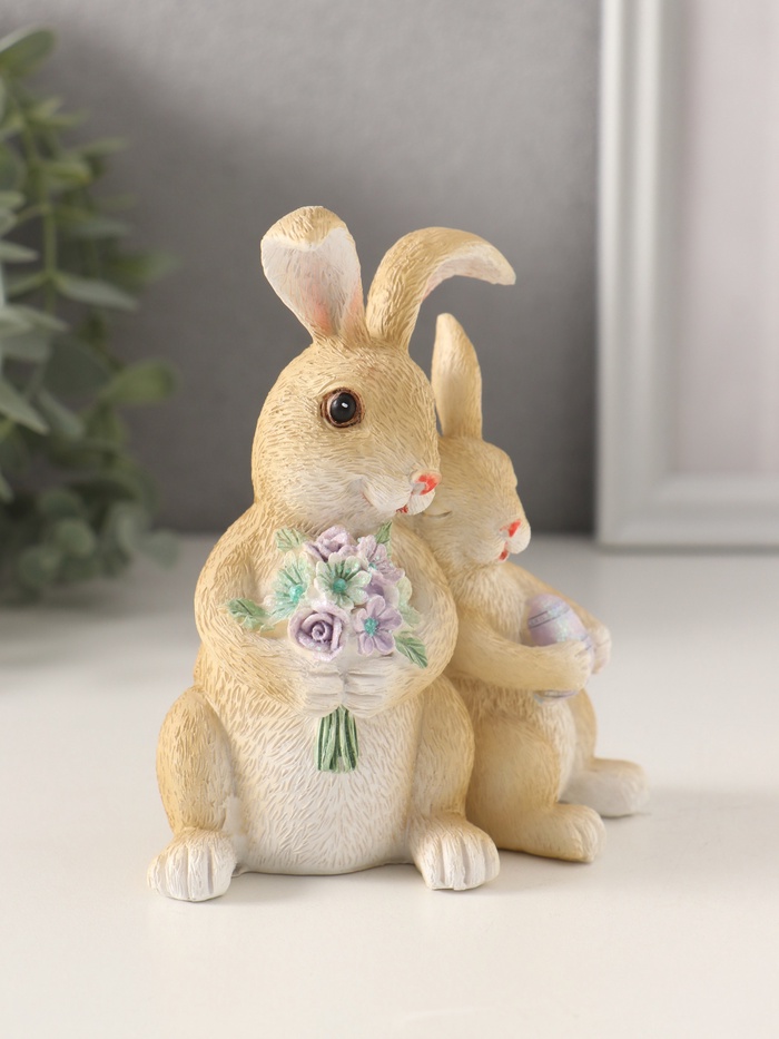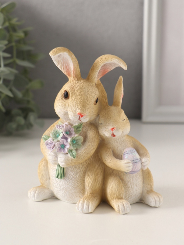 Фигурка полистоун «Зайчики с букетом незабудок и пасхальным яичком», 10.5×7×12 см