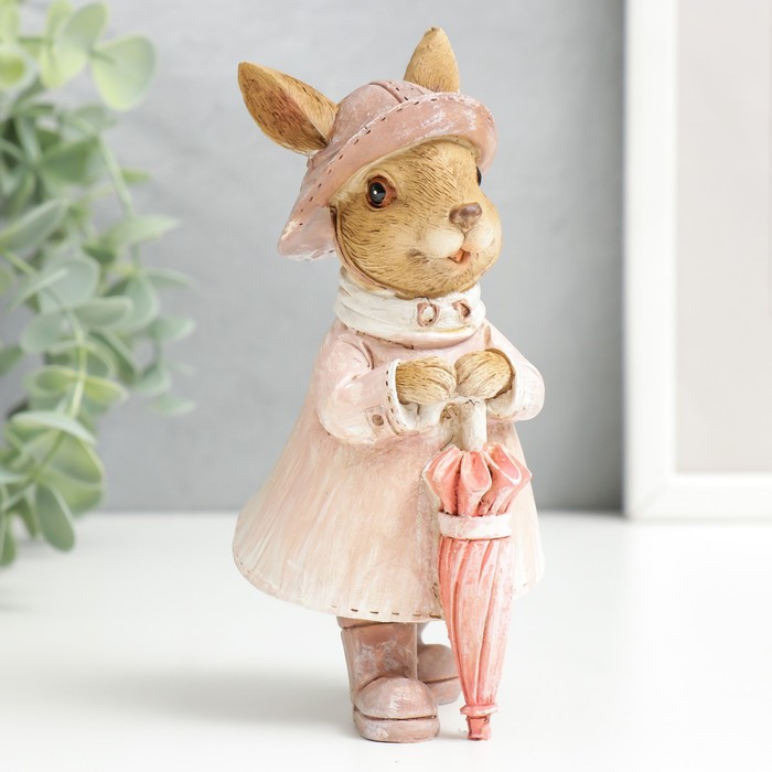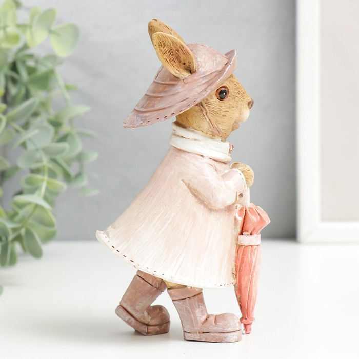 Фигурка полистоун «Зайка в шляпке и дождевике с зонтом», 14.5×6.5×8 см