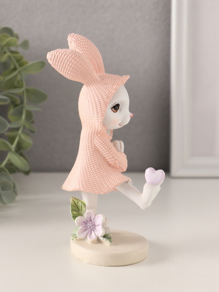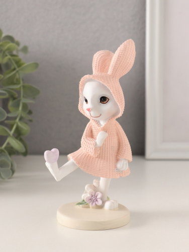 Фигурка полистоун «Зайка в вязаном розовом платьице, сердечко на лапе», 8×5.5×14.5 см