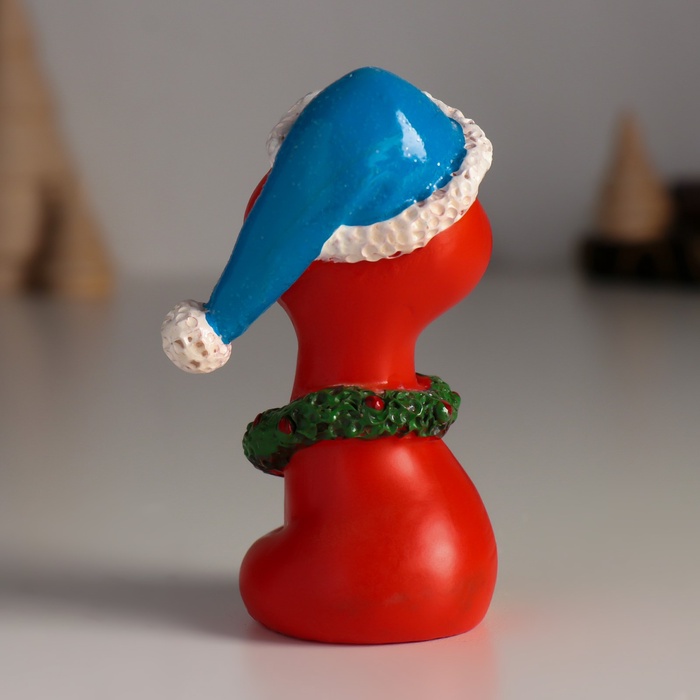 Фигурка полистоун «Змейка красная в синей шапке и новогоднем венке», 5×4×8.5 см