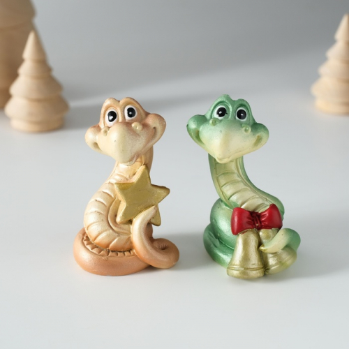 Фигурка полистоун «Змейка с колокольчиками/звездой», 3.5×3.5×6.5 см, МИКС