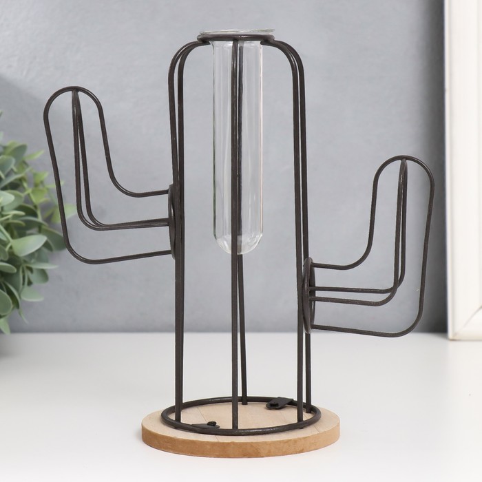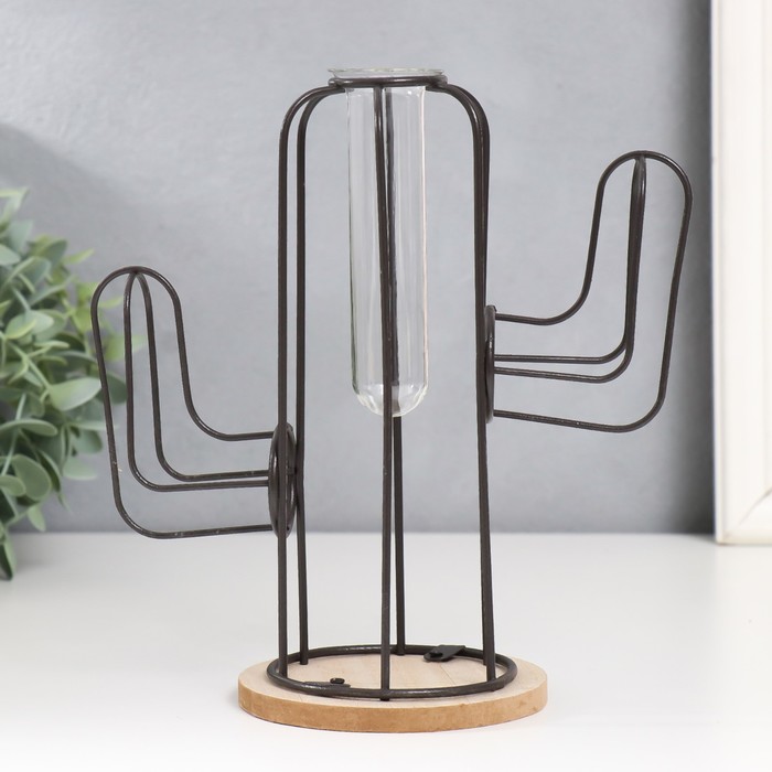 Фигурка с колбой (вазоном) «Кактус», чёрный, 20×12×22.5 см
