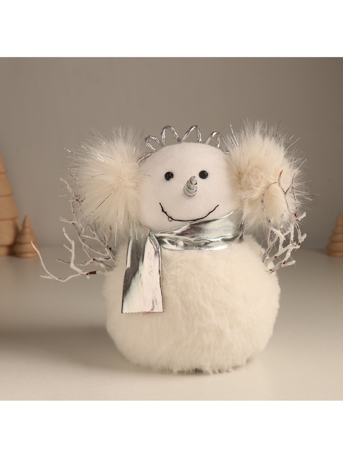 * Искусственный мех украшает наушники снеговика, добавляя мягкость и атмосферу тепла.