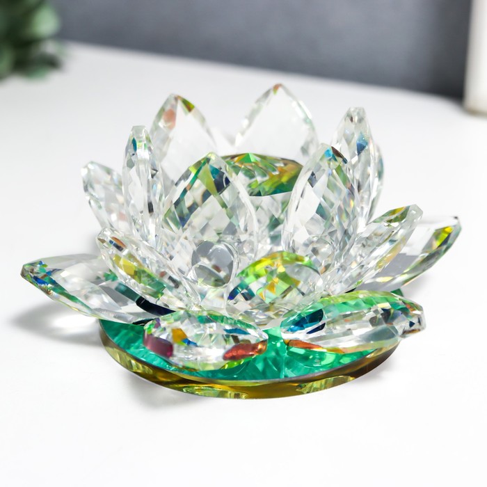 Фигурка стекло «Лотос кристалл трехъярусный голография», d=11 см