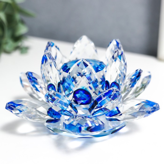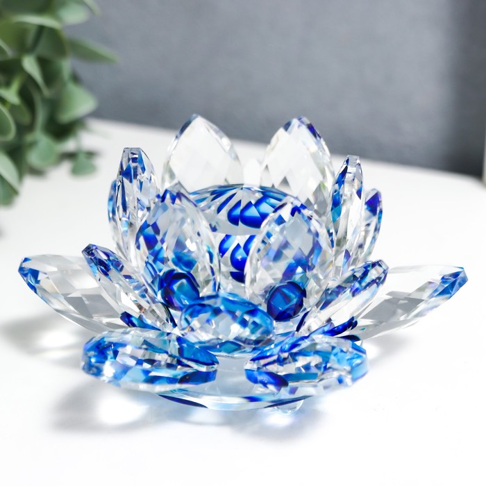 Фигурка стекло «Лотос кристалл трехъярусный голубая радуга», d=11 см