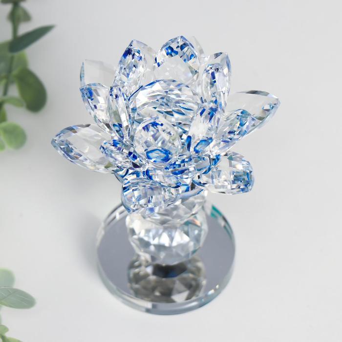 Фигурка стекло «Лотос на пьедестале», вращается, голубой, 10.5×8.5×8.5 см