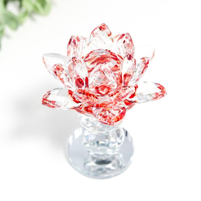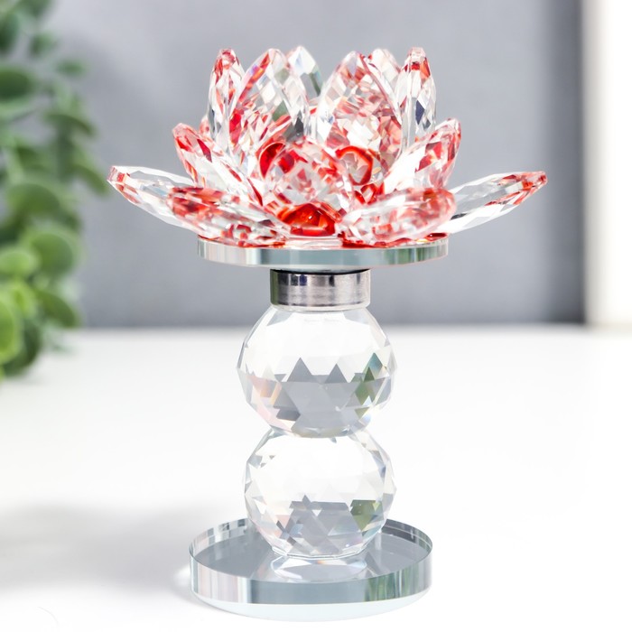 Фигурка стекло «Лотос на пьедестале», вращается, красный, 10.5×8.5×8.5 см