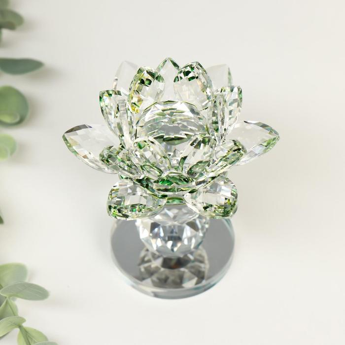 Фигурка стекло «Лотос на пьедестале», вращается, зелёный, 10.5×8.5×8.5 см
