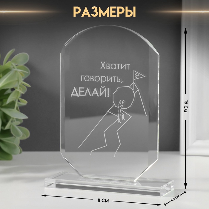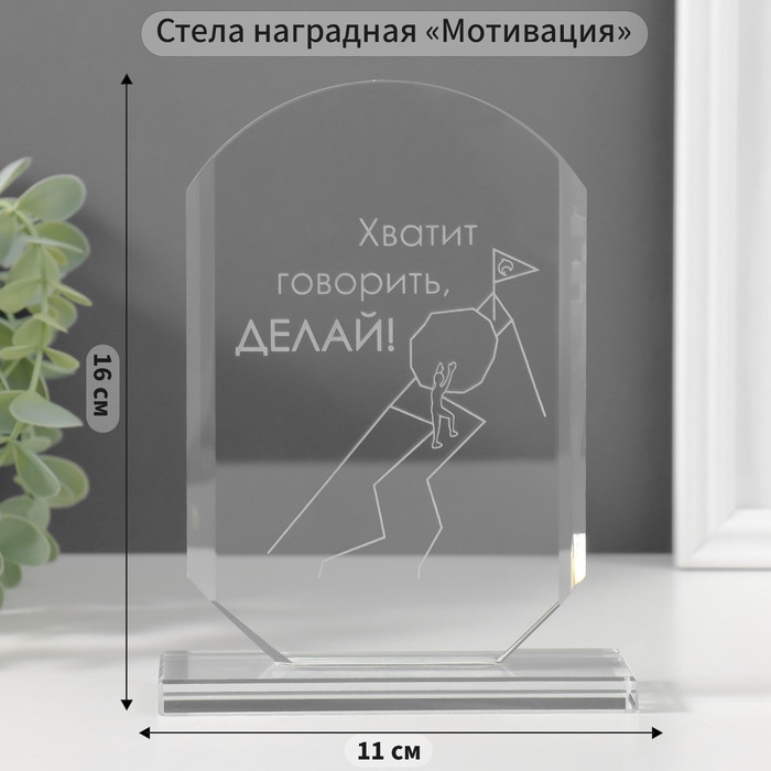 Фигурка стекло «Стела наградная. Делай», 16×11×4.5 см