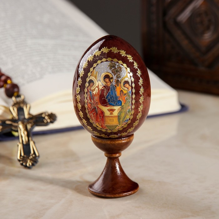 Фигурка «Сувенирное яйцо на подставке. Икона Троица», дерево
