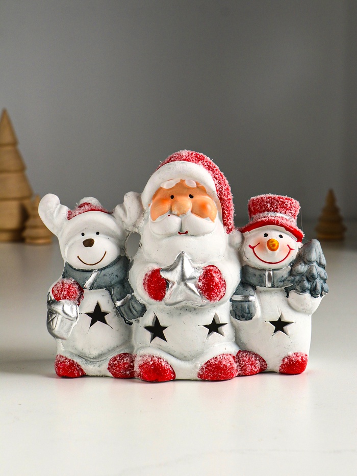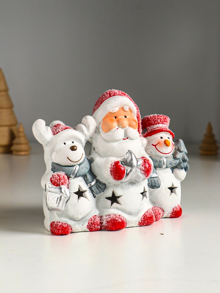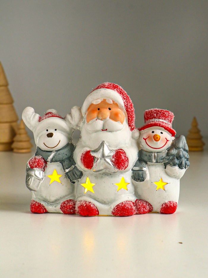 Фигурка светящаяся «Дед Мороз, снеговик и лосик», керамика, 15.5×5.8×11.5 см