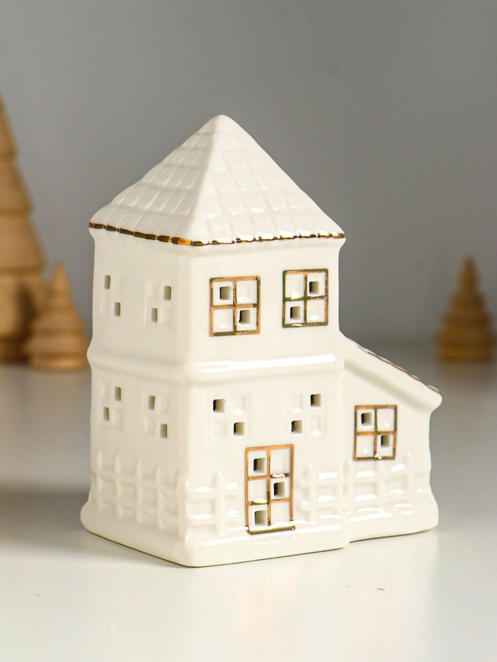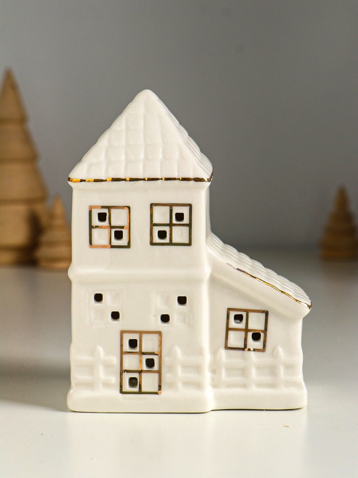 Фигурка светящаяся «Домик с верандой», керамика, белый с золотом, 9.5×6×12.5 см