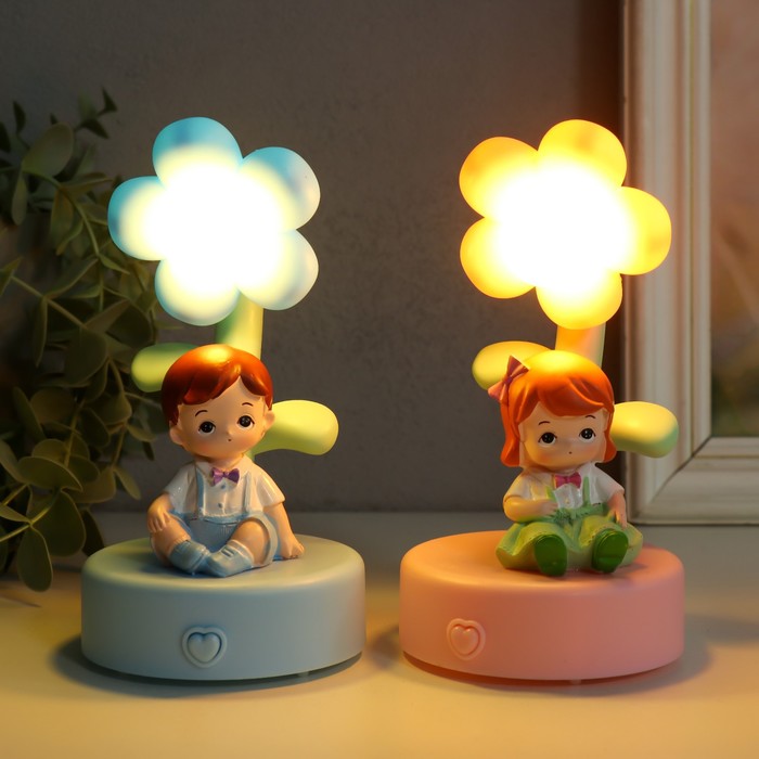 Фигурка светящаяся «Малыш или Малышка у цветка», полистоун, 14.5×8×8 см, МИКС
