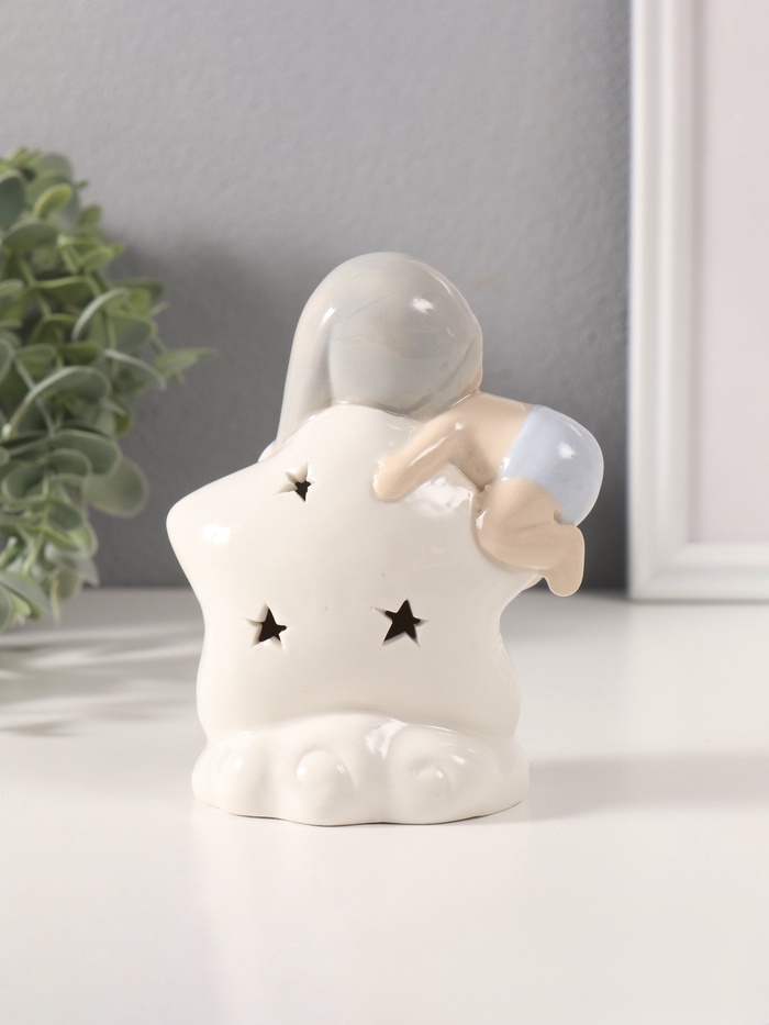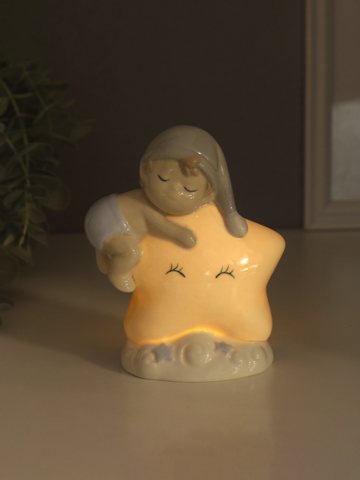 Фигурка светящаяся «Малыш в голубом колпаке на звёздочке», керамика, 6×10.5×12.5 см