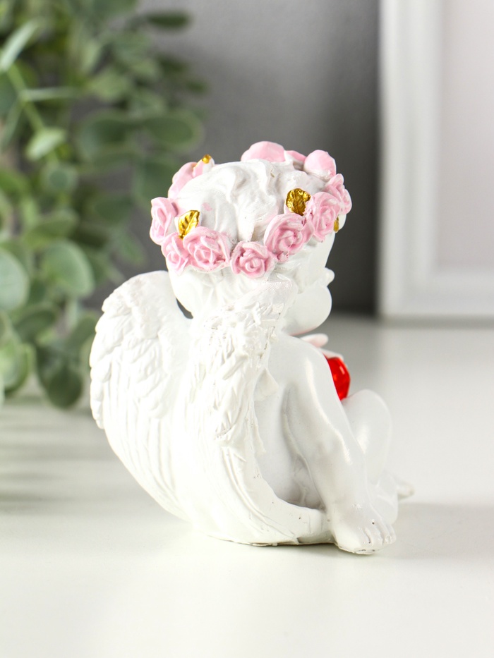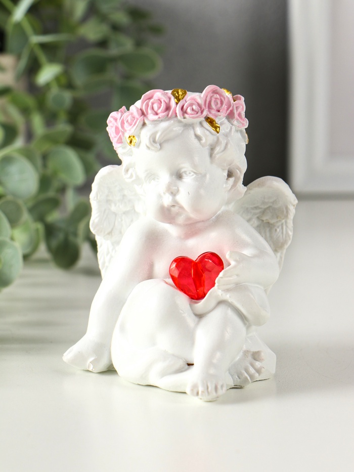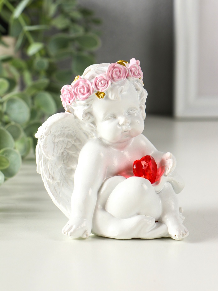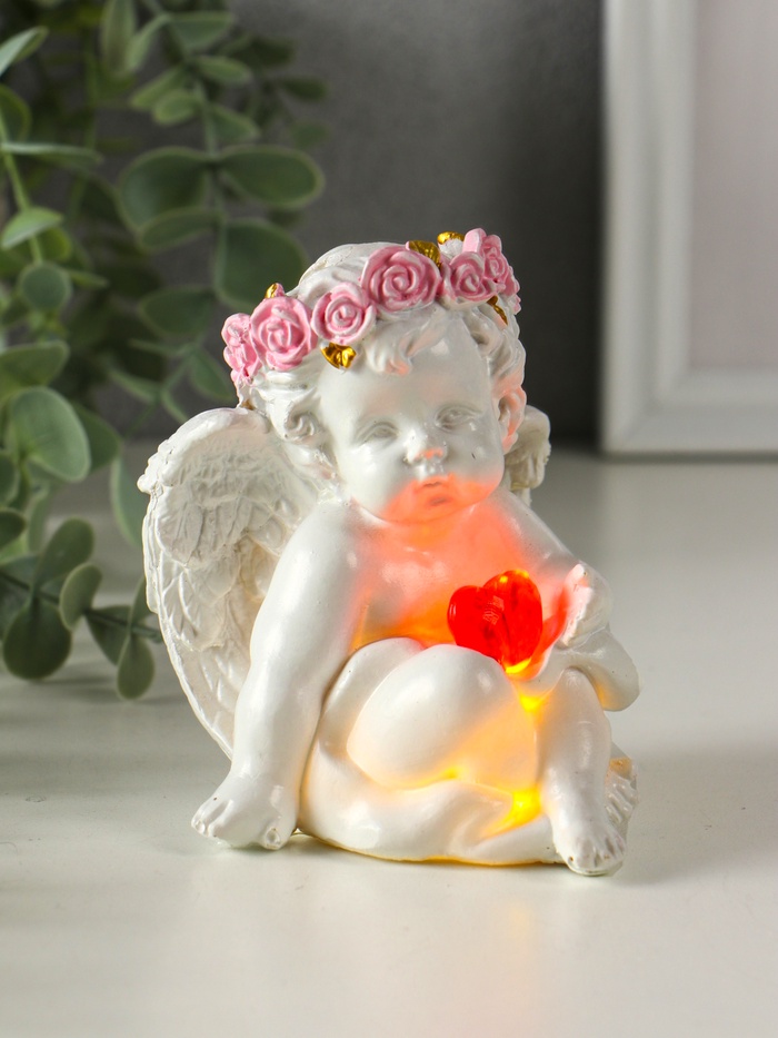 Фигурка светящаяся полистоун «Ангел - воздушный поцелуй в форме сердца», белый, 6.8×6×7.3 см