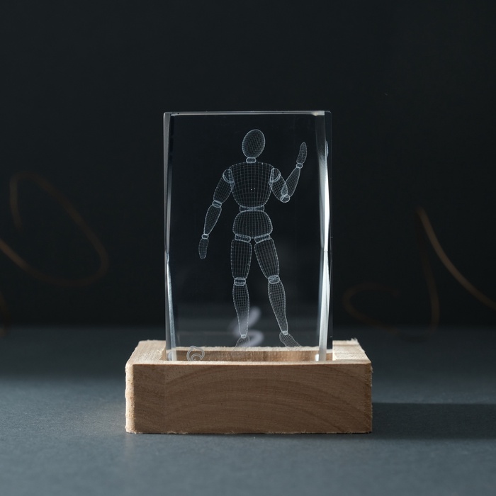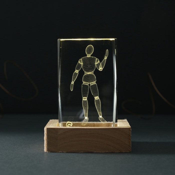 Фигурка светящаяся стекло «Прямоугольник. Шарнирный человек», подставка дерево, USB, 7×7×10