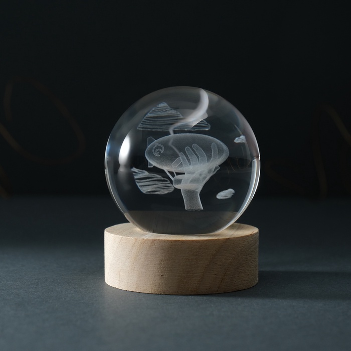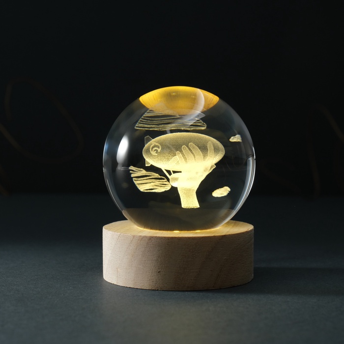 Фигурка светящаяся стекло «Шар. Дирижабль», d=6 см, подставка дерево, USB