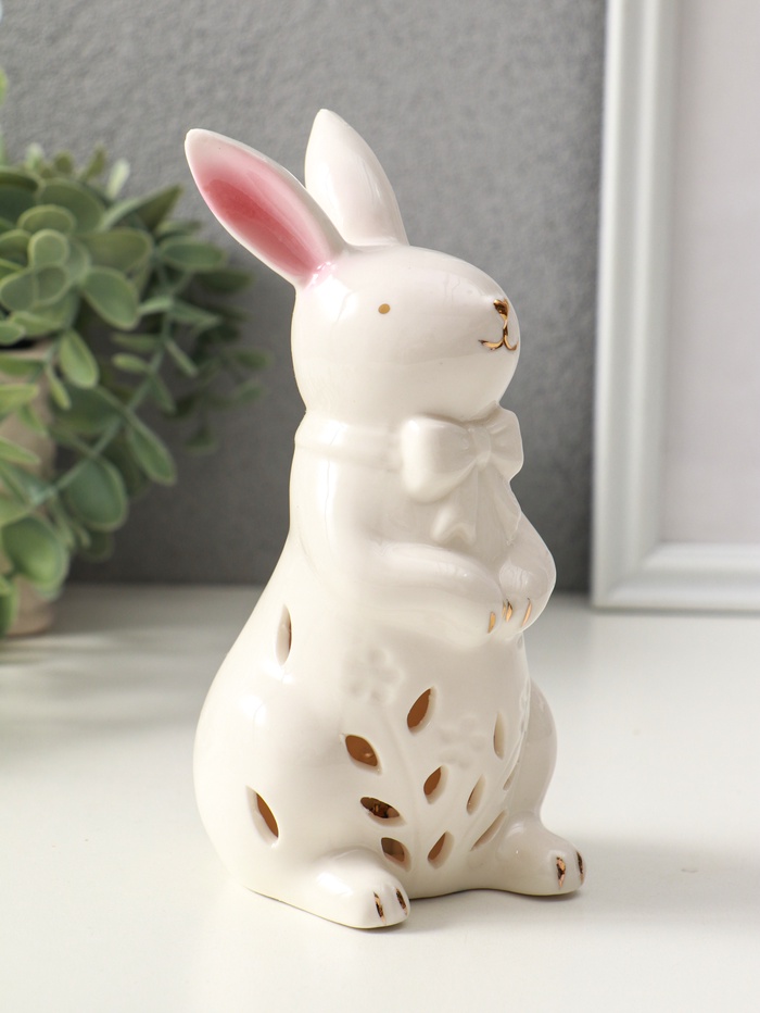 Фигурка светящаяся «Зайка с бантом», керамика, белый, 7.5×8×15.5 см