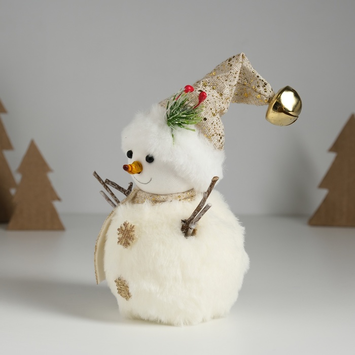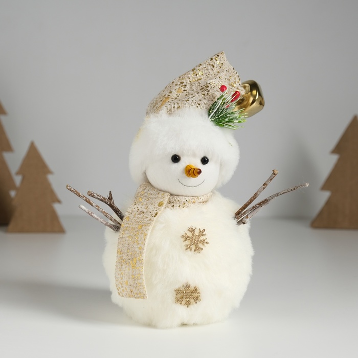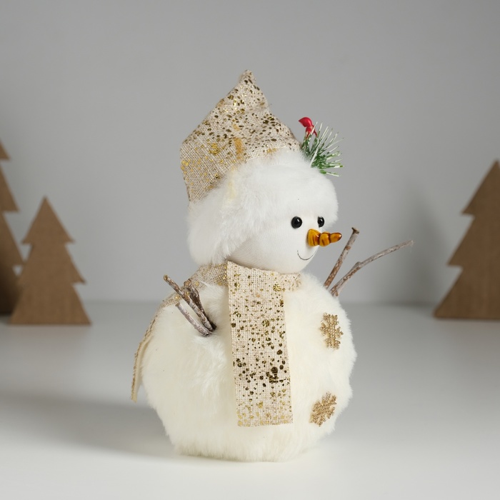 Фигурка текстиль «Снеговик меховой с веточкой на шапке», 9.5×9.5×16 см