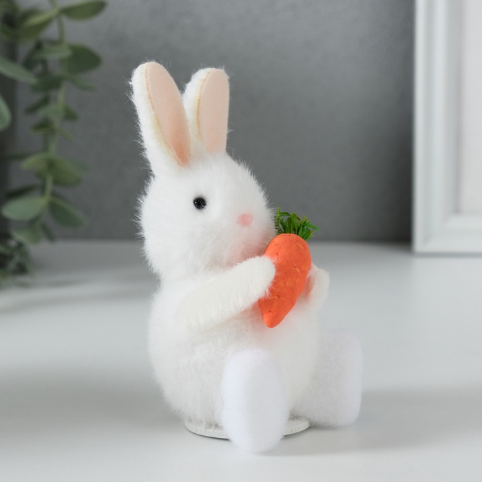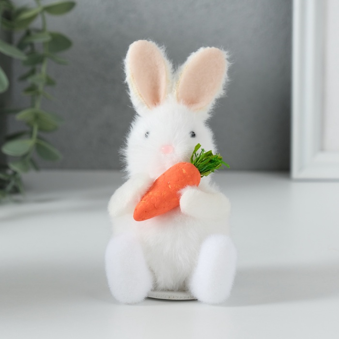 Небольшие размеры (6.5×6.8×11.7 см) делают эту фигурку идеальным аксессуаром для создания уютных уголков в интерьере. Мягкий текстиль приятен на ощупь, а тщательная проработка деталей - от аккуратных ушек до яркой морковки - придаёт образу завершённость и особое обаяние.