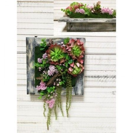 Фитокартина с суккул. в дерев. раме (розов) 30*30см