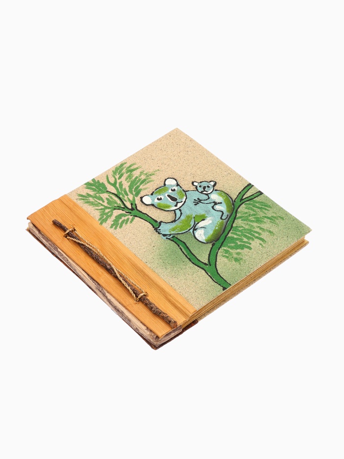 * Обложка из пальмового листа с нанесённым изображением коал, символизирующих безмятежность.