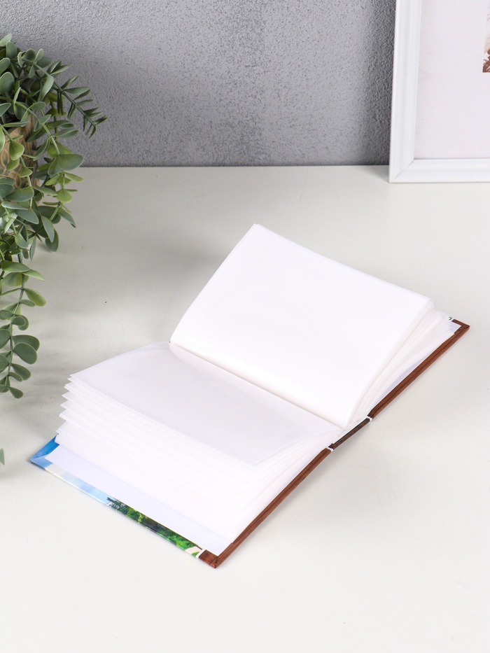 * Прочные пластиковые листы: Страницы из белого пластика устойчивы к случайным загрязнениям. Фотографии фиксируются в прозрачных кармашках, их не нужно наклеивать или подписывать.