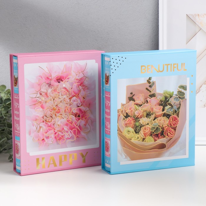 Фотоальбом на 100 фото 10×15 см «Пышные розовые цветы», в коробке, 26.5×21×5.3 см, МИКС
