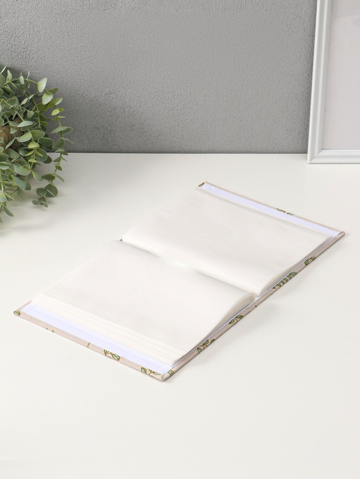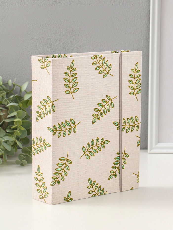 Фотоальбом на 200 фото 10×15 см на резинке «Зелёные веточки», текстиль, 23×17.5×5 см