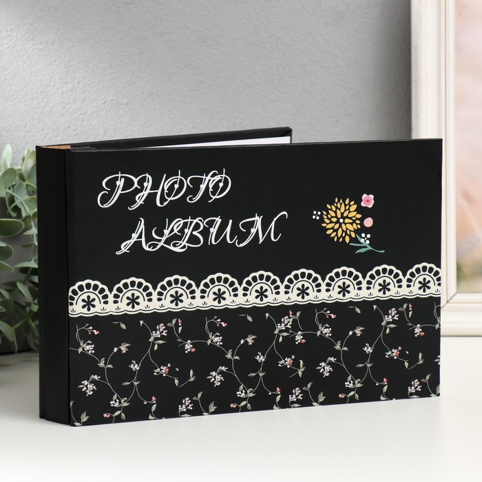 Фотоальбом на 52 фото 15×20 см «Цветочная вышивка на чёрном», кожзам, 4×17.1×25.3 см