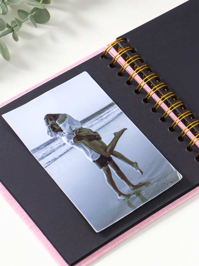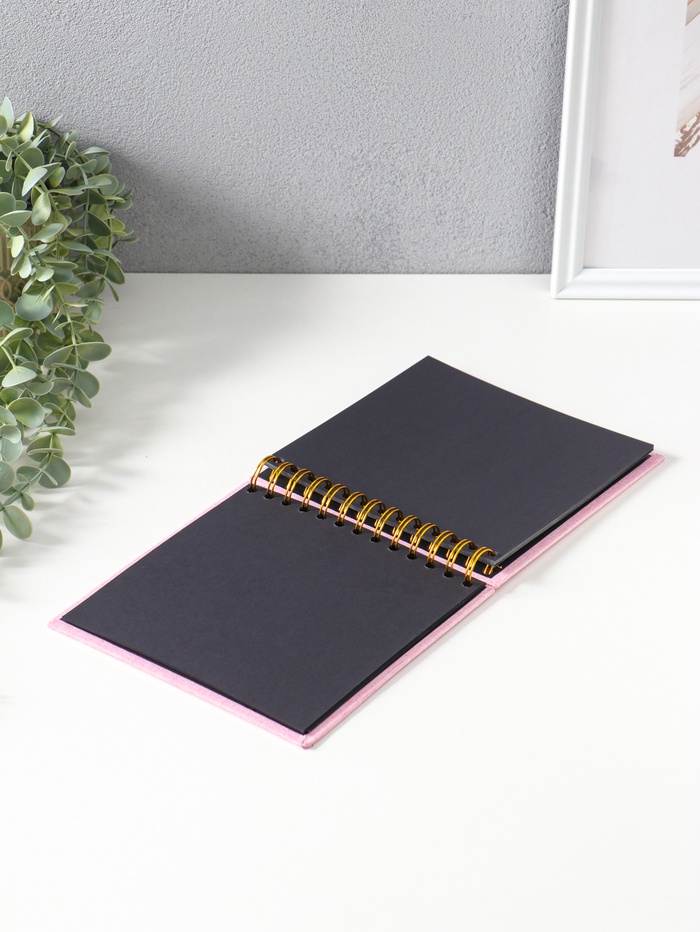 Чёрные страницы этого альбома превращают просмотр фотографий в особый ритуал. Снимки, запечатлевшие яркие моменты, будто светятся изнутри на тёмном фоне. Прочная спираль и твёрдый переплёт выдерживают частое использование, а лаконичный дизайн делает его универсальным — от свадебных кадров до портретов. Это не просто папка для хранения, а цельная история, собранная вами лист за листом.