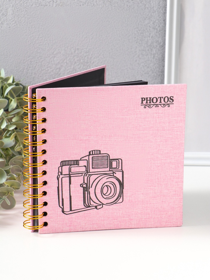 Фотоальбом на спирали 20 листов «Фотоаппарат. Розовый», текстиль, чёрный картон, 17.5×17.5 см