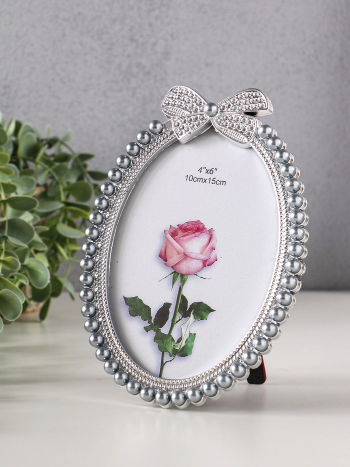 Фоторамка для фото 10×15 см «Бант», пластик под металл, жемчуг и стразы, серо-голубая, 17.5×11.5 см