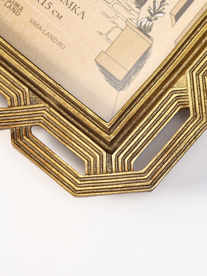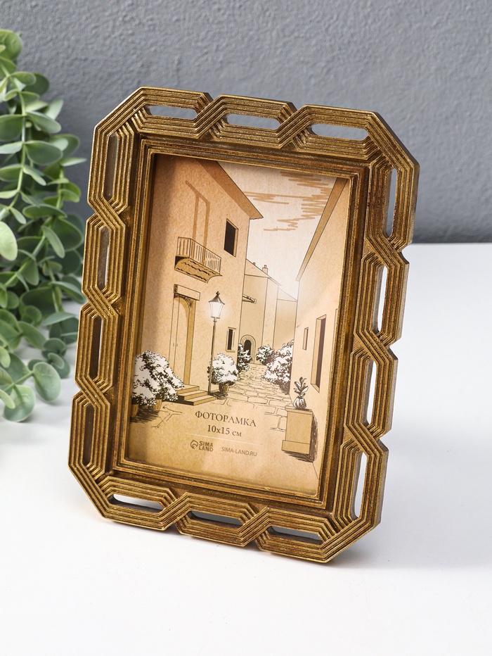 Эта элегантная золотая фоторамка — не просто аксессуар для фотографии, а стильный артефакт для вашего интерьера. Её геометричный дизайн и тёплый оттенок полистоуна под золото создают ощущение вневременной ценности, превращая ваше любимое воспоминание в лаконичное произведение искусства. Универсальное оформление делает рамку идеальным спутником для любого момента жизни — от семейного портрета до памятного кадра с друзьями.