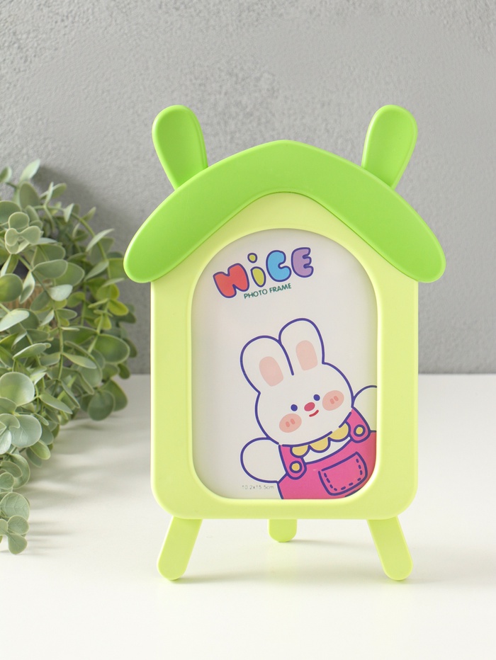 Фоторамка для фото 10×15 см «Домик с ушками зайки», пластик, зелёный, 2×16.7×26 см