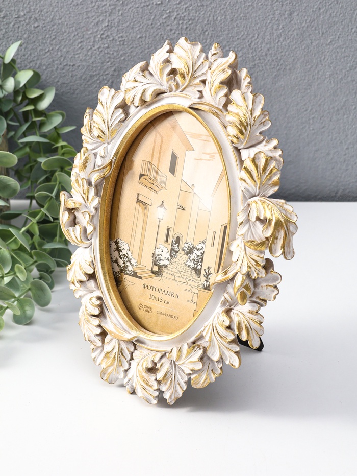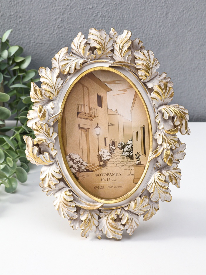 Фоторамка для фото 10×15 см «Дубовые листья», полистоун, белая с золотом, 18×2×23 см