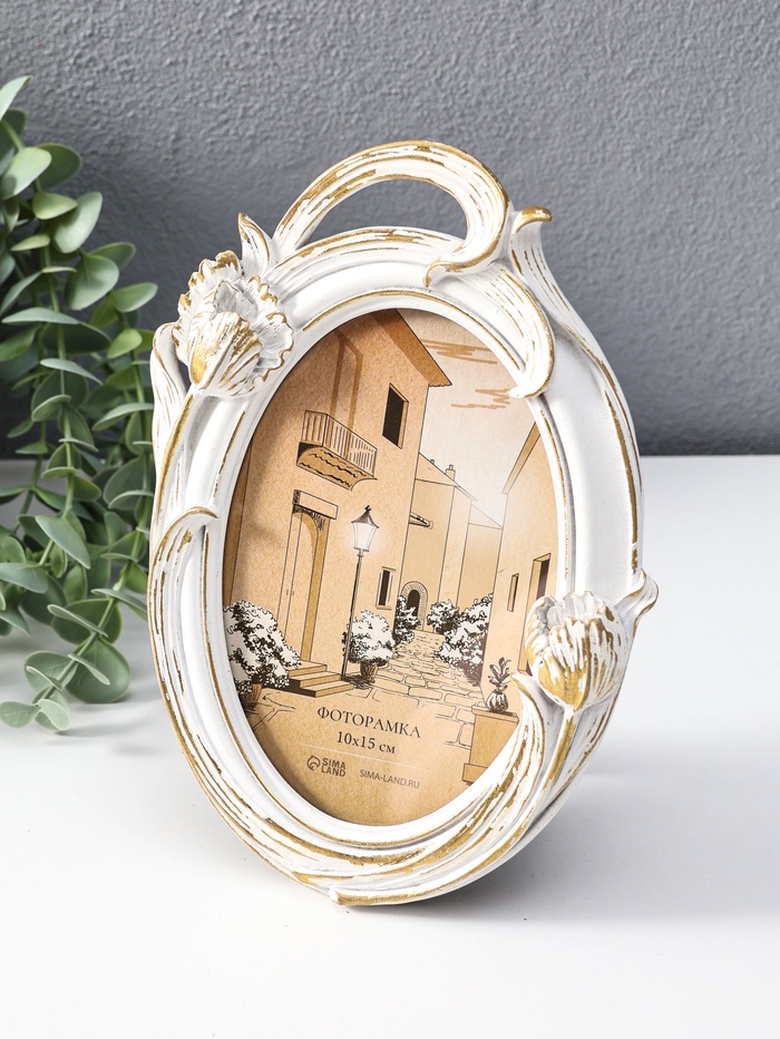Фоторамка для фото 10×15 см «Махровые тюльпаны», полистоун, белая с золотом, 14×2.5×20 см