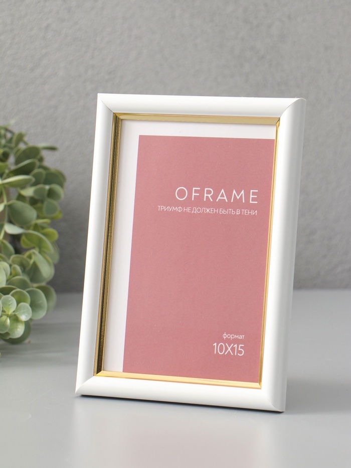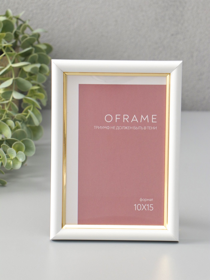 Фоторамка для фото 10×15 см Oframe, пластик, белый с золотом, (пластиковый экран)