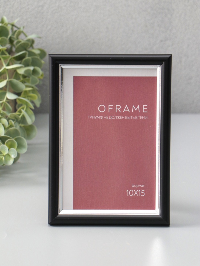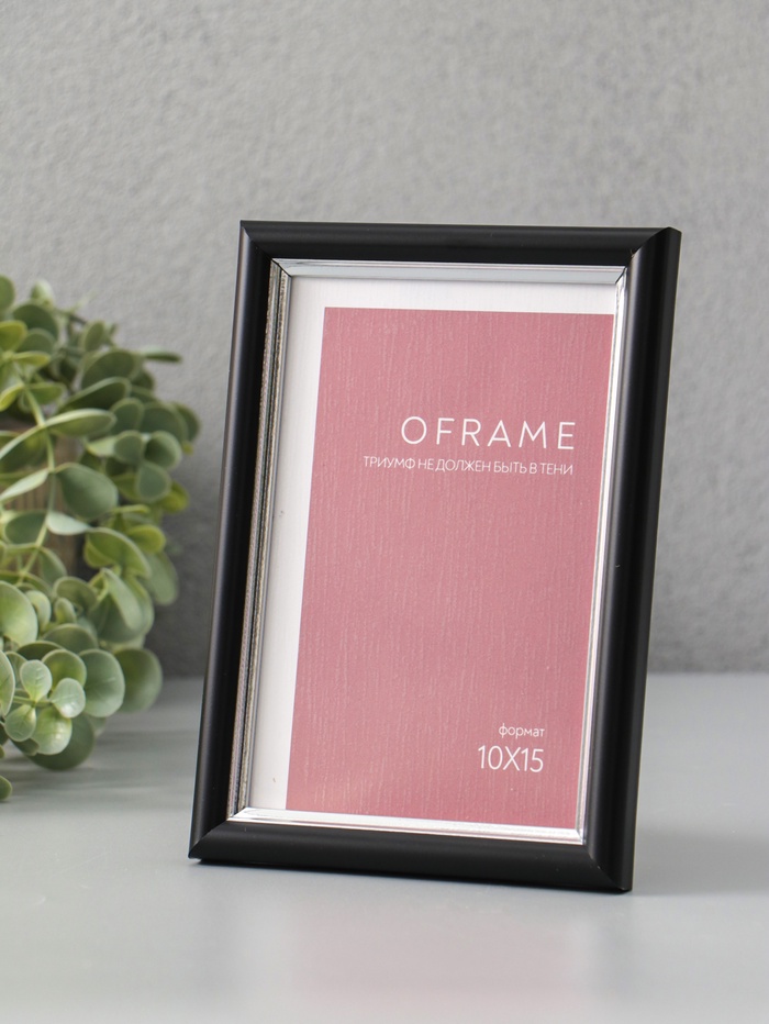 Фоторамка для фото 10×15 см Oframe, пластик, чёрный с серебром, (пластиковый экран)