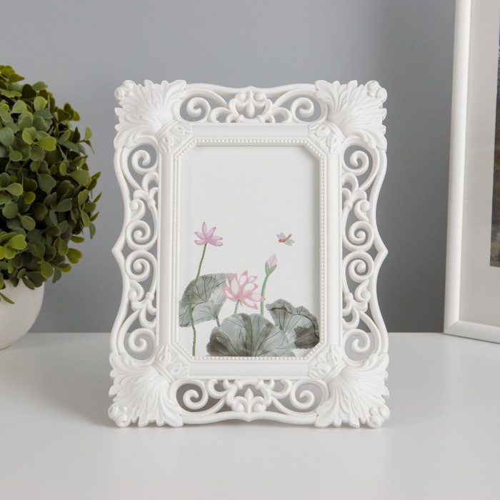 Фоторамка для фото 10×15 см «Рококо», пластик, белая, 22.5×17.8 см