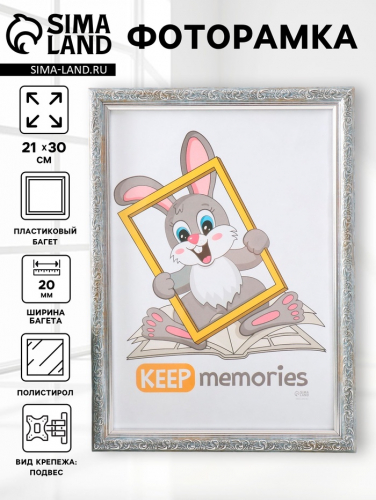 Фоторамка для фото 10×15 см «Романтизм», пластик, серая, 16.5×21.4 см